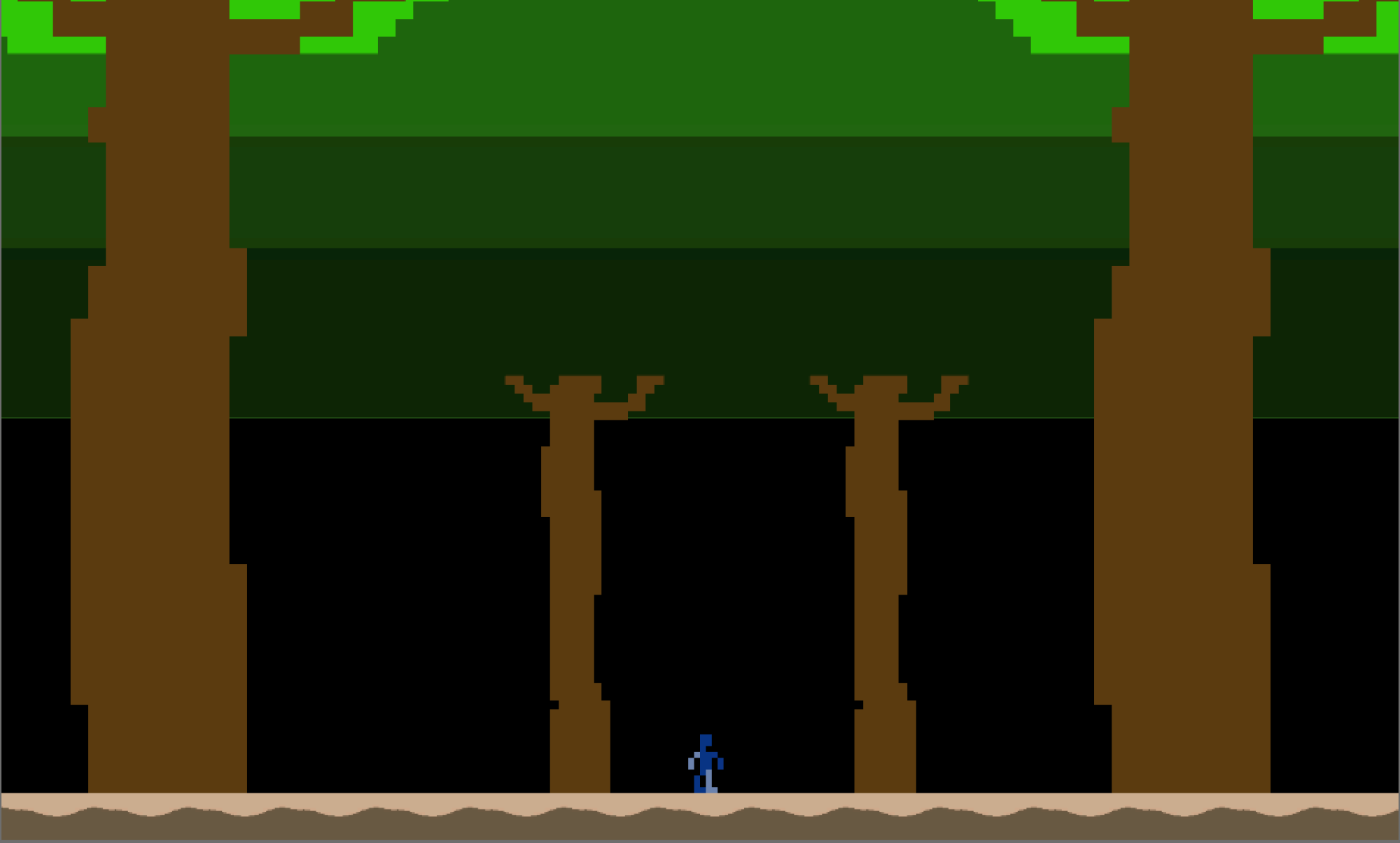 When I decided I wanted to make a game for the new Atari system, I sat down and started brainstorming what kind of game I wanted to make. After playing around with a few concepts, I hit upon an idea that really excited me. A 2d Metroidvania done in the style of the Atari 2600. A game that plays like Hollow Knight but looks like Pitfall. I want the art style to evoke the idea that this is a lost Atari 2600 game, but with gameplay that feels, controls, and contains all the conveniences of modern games. ‘Evocative‘ is the key word here. I’m being inspired by the art and imagery of the Atari. I’m not forcing myself into only using certain colors, or restricting my sprites to certain pixel ratios in order to accurately re-create graphics that could have existed on original Atari hardware. I’m interested in applying the idea of “Atari Style Graphics” as an artistic limitation, rather than a technical one.