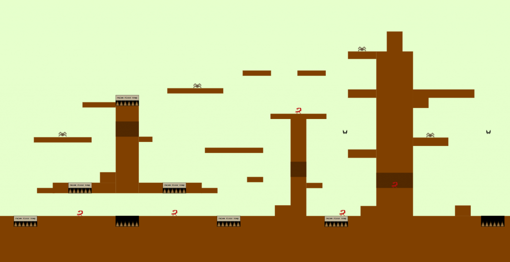 Initially the player will start out with nothing. They will only be able to single jump, and will not be able to attack. They will have to explore the world and avoid enemies until they eventually find a melee weapon that they will be able to equip and use to fight against the monsters. I’m not sure what type of weapon it will be yet. My inner Castlevania fan wants it to be some kind of whip. A key thing to note is that while it’s expected that you’ll pick up the weapon and use it throughout the game, I also want to design the game in such a way that it can be completed without picking up the weapon. Even if it is a super difficult path, I want there to be a pacifist route through the game.