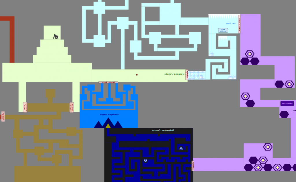 When I first entertained the idea of trying to do a Metroidvania, I knew designing the map was going to be one of my biggest challenges. To see if I was up to the challenge of designing something interesting, I decided to test myself. I gave myself a weekend to brainstorm the idea, and try to get a rough design of a map. If at the end of that weekend, I felt like I had enough, or felt confident that I would be able to design the map, then I would move forward with the development.