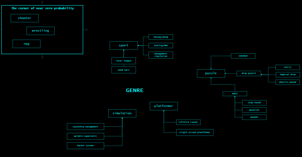 My hour of brainstorming was fertile and I had a bunch of ideas, but I didn’t have THE idea yet. None of my concepts really sparked my interest. I was still waiting for that moment of inspiration where you can visualize the game that you wanted to work towards, and you get filled with excitement that propels you forward with momentum. But whether I was inspired or not, the clock was ticking and I needed to get down to work.