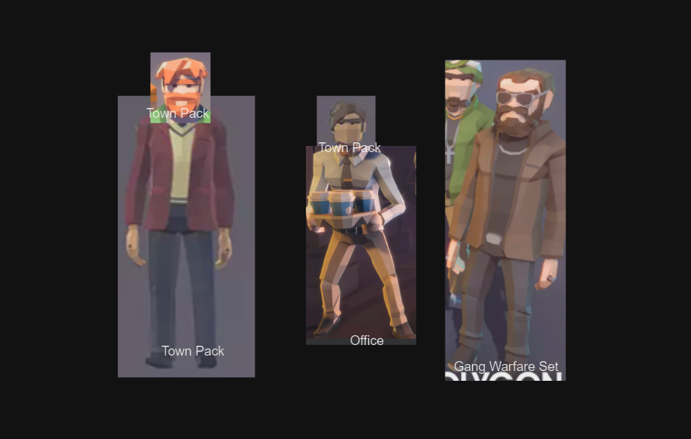 I like the idea of using the Synty assets for my character models, but I want to see what would be required to get all the models I need. I go through the all the character models in the Synty assets I already own, and the models in their asset packs on the Unity Asset Store. I take screenshots of the assets and start collaging parts together to make my friends. I make notes about which asset pack each of the pieces is coming from. There’s a lot of assets so it takes a while to go through everything, but by the end I’m feeling pretty good about what I can get done by combining the different assets.