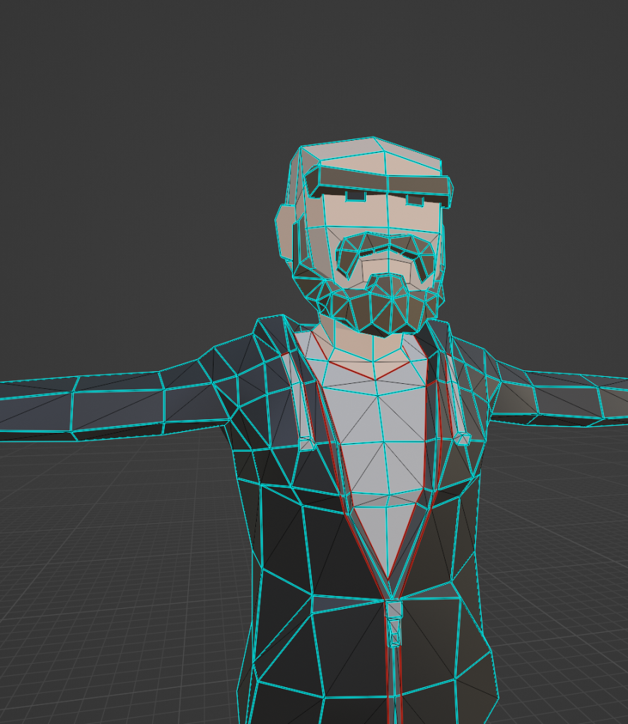 Since it’s my first attempt, I’m actually pretty happy with the results. I think I managed to model a pretty decent topology for how inexperienced I am as a modeler. Unfortunately the face doesn’t look that much like my friend. Or at least it doesn’t look enough like him to make up for the amount of work that went into it. And this is just the face! For the game, I’d still need to do the rest of the head, the entire body, clothes, hair, etc. I come to the conclusion that I don’t have the time (or skills) to do the entire model in this style. So I’m going to stick with the low poly style.